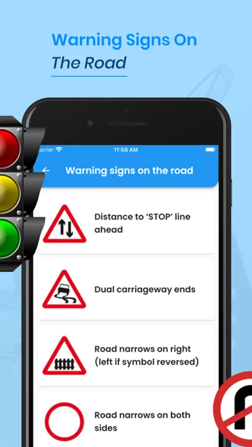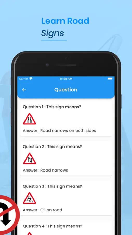3. Study Mode: In addition to the test mode, the app provides a study mode where users can explore the traffic sign database at their own pace. They can browse through various categories, view signs in detail, and read accompanying explanations to gain a comprehensive understanding.