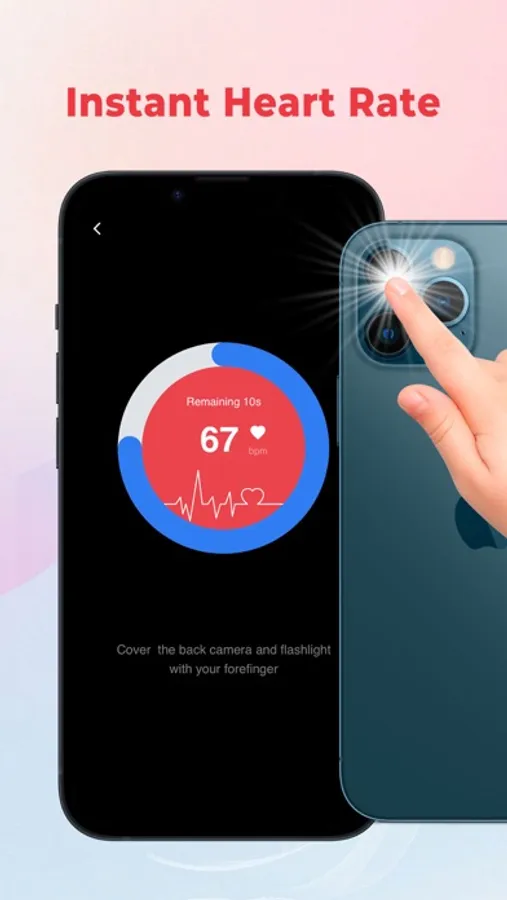 - Press and hold the camera and flash on the back with your finger, and you can read the pulse in seconds with one touch.
