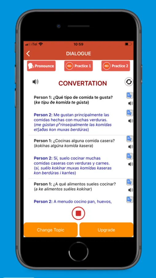 How to speak Spanish app help you practice listening with an AI teacher with a standard Spanish accent: