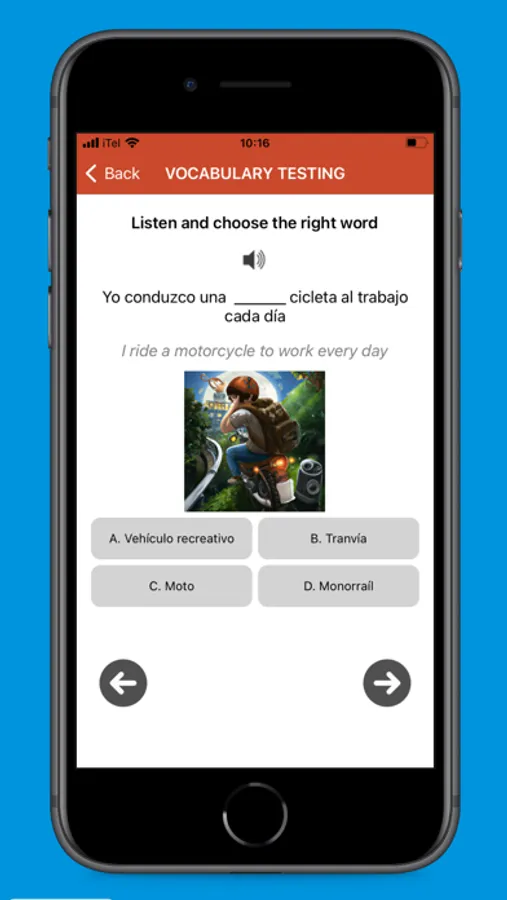 No more boring and dry, learning Spanish vocabulary has never been more fun and intuitive. With How to speak Spanish app you will discover a collection of vivid pictures that illustrate each word. Forget the traditional memorization, and instead apply your knowledge immediately through hands-on activities and games that enhance your understanding.