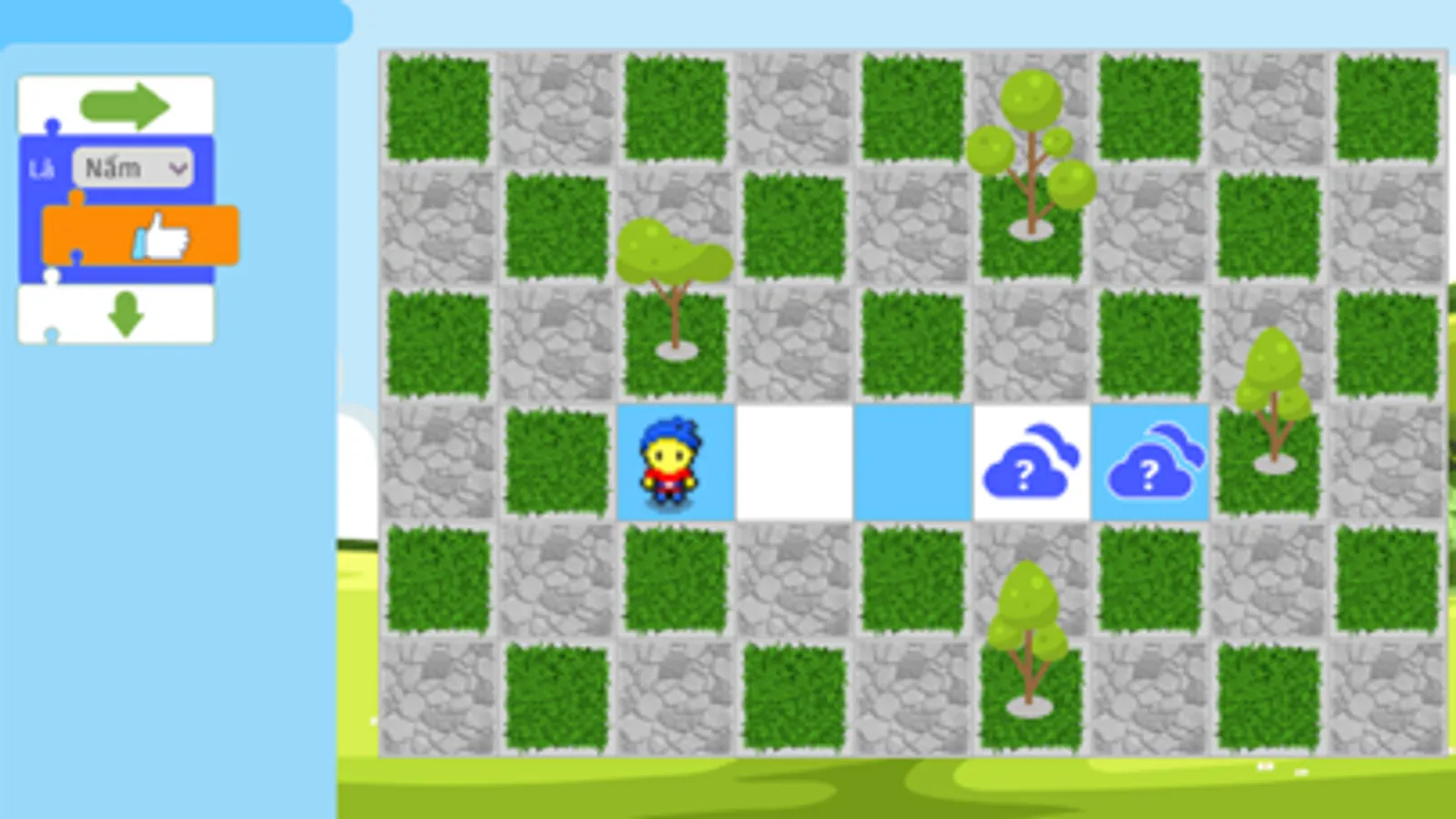 • Khởi động: Giúp bé làm quen với các khối lệnh thông qua việc kéo và ghép các khối lệnh để giúp bạn robot trở về nhà