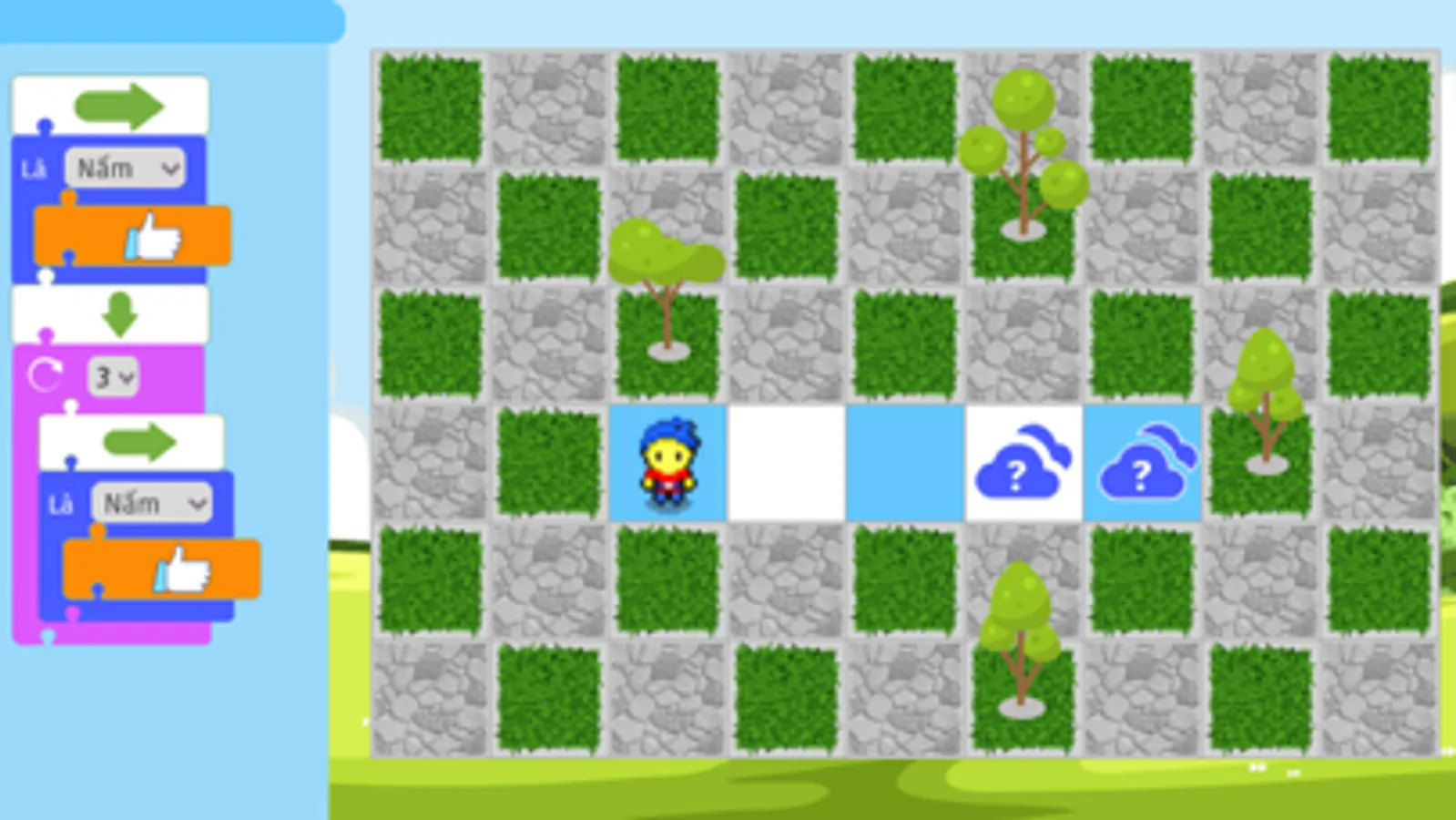 • Tuần tự: Lập trình giúp bạn robot đi đến được nơi có nấm và hái nấm. Đó là bước đầu tiên, quan trọng nhất của lập trình. robot sẽ đc lập trình và thực thi theo đúng trình tự sự kiện được đưa ra bởi người viết mã