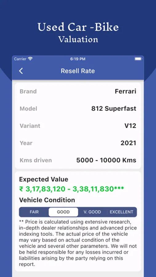 This app uses real-time data to provide you with an accurate and up-to-date estimate of the resale value of your vehicle. Simply enter your vehicle's make, model, year, mileage, and condition, and the app will do the rest.