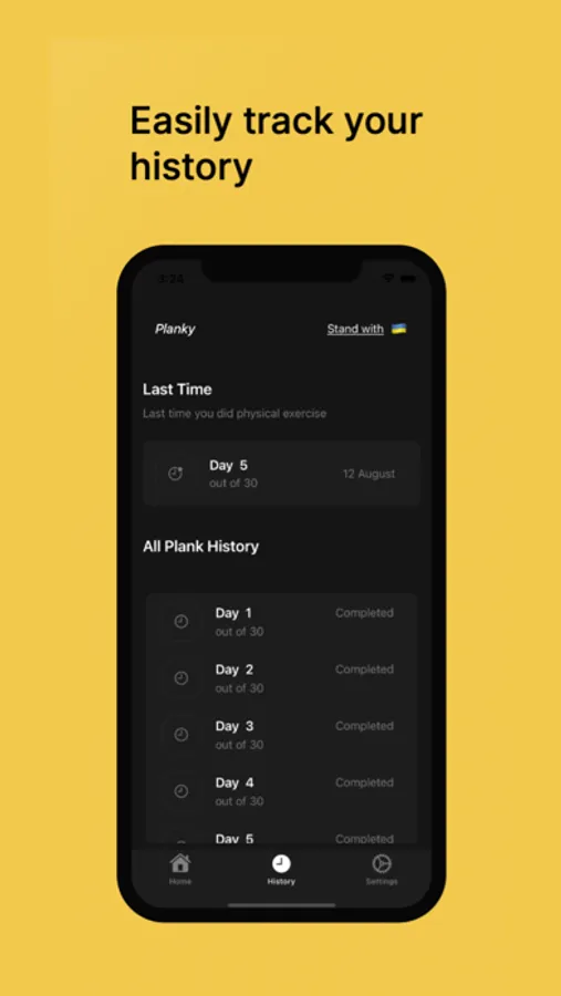 With our Planky app, you can increase your plank time gradually, achieving new records and improving your performance. The app offers a 30-day Planky programme that helps you to train consistently every day for a period of time.