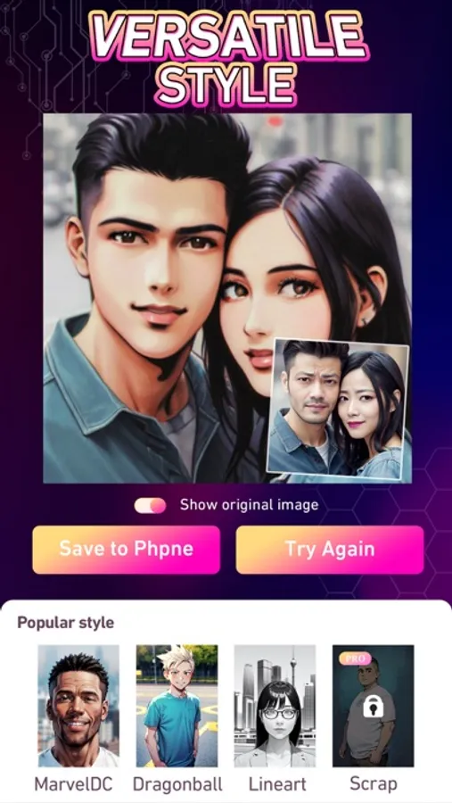 With AiMagiCam, you can convert any photo into stunning art styles such as Cartoon, Sketch, American comic, Cyberpunk and more. With just a few simple steps, you can change the overall style of the photo, enhance its colors, and even add different effects such as comic styles. What's more, you can preview each effect in real time and easily adjust the settings to get the perfect photo.