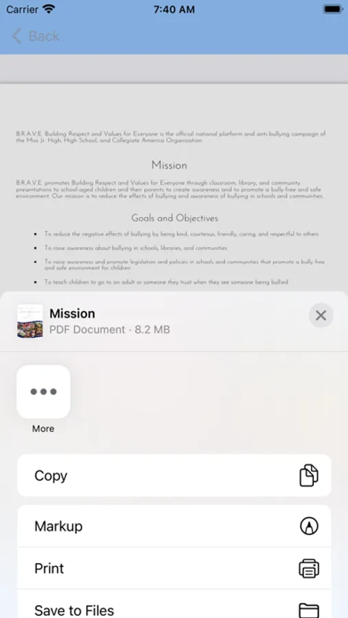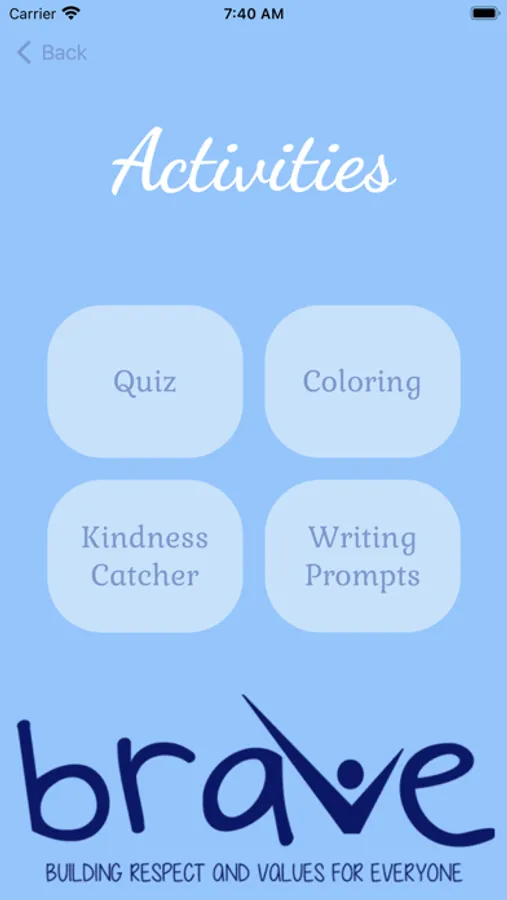 Reese is proud to represent the B.R.A.V.E. anti-bullying platform. Building Respect and Values for Everyone is the goal, and we have awesome Reese-ources to provide on how to protect and defend yourself and others from bullying. Take the pledge with us today! This app is made for users to be able to view, save, and print these resources for students across America when Reese visits their schools. Check out the B.R.A.V.E. Book List or some of our awesome activities. Use our Help button to learn how find help immediately.