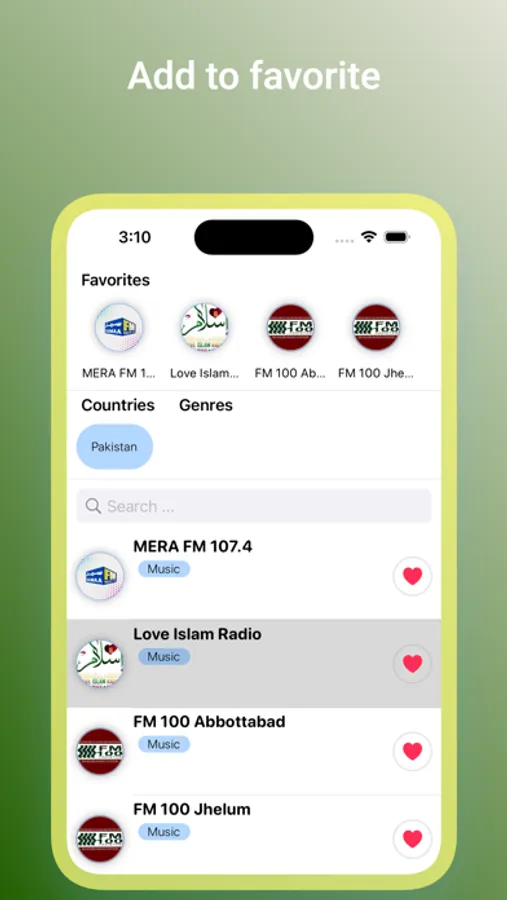 • اپنی پسندیدہ فہرست میں اسٹیشن شامل کریں۔