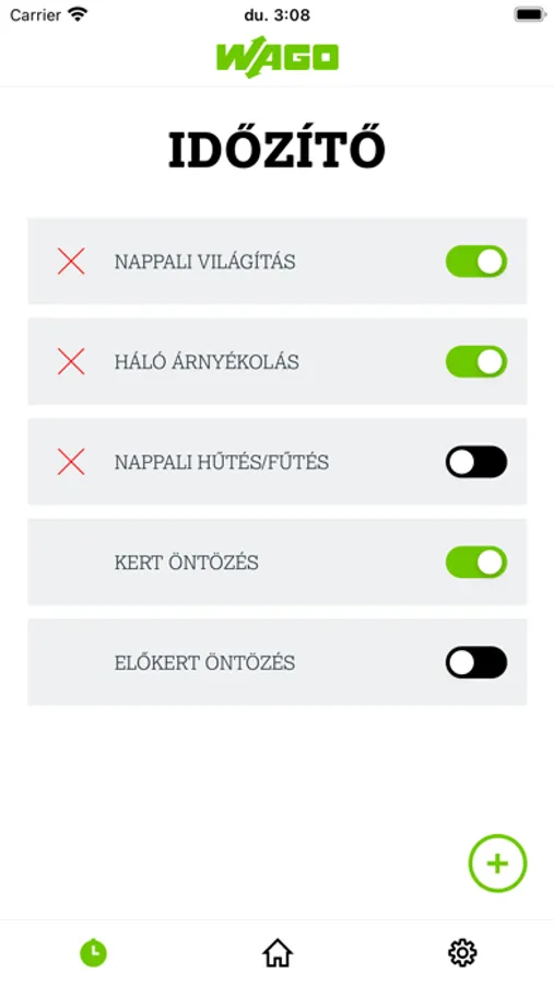 WAGO EasyLife - okosotthon rendszer távoli eléréshez applikáció. Világítás kapcsolás, fűtés - hűtés állítás, redőny vezérlés. Öntözés és idő programok hozzáadása.