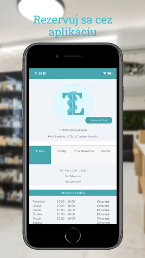 TrebisovskaLekaren.sk je moderná a spoľahlivá aplikácia pre využitie našich služieb. S aplikáciou budete mať vždy prehľad o akciách a zľavách, môžete si rezervovať termín v poradni a získať odborné poradenstvo od kvalifikovaného farmaceuta. Aplikácia je prehľadná a jednoduchá na použitie s moderným dizajnom. Stiahnite si aplikáciu TrebisovskaLekaren.sk a svojho lekárnika budete mať vždy poruke.