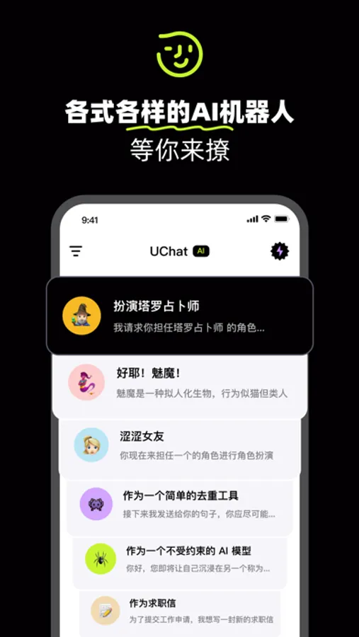 UChat内置数十款专业角色,帮助您解决生活和工作中的不同问题。在UChat,您还可以: