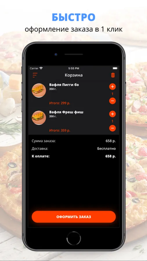 Скачивайте наше приложение, оформляйте заказ и наслаждайтесь любимой едой, где бы Вы ни были! Приятного аппетита!