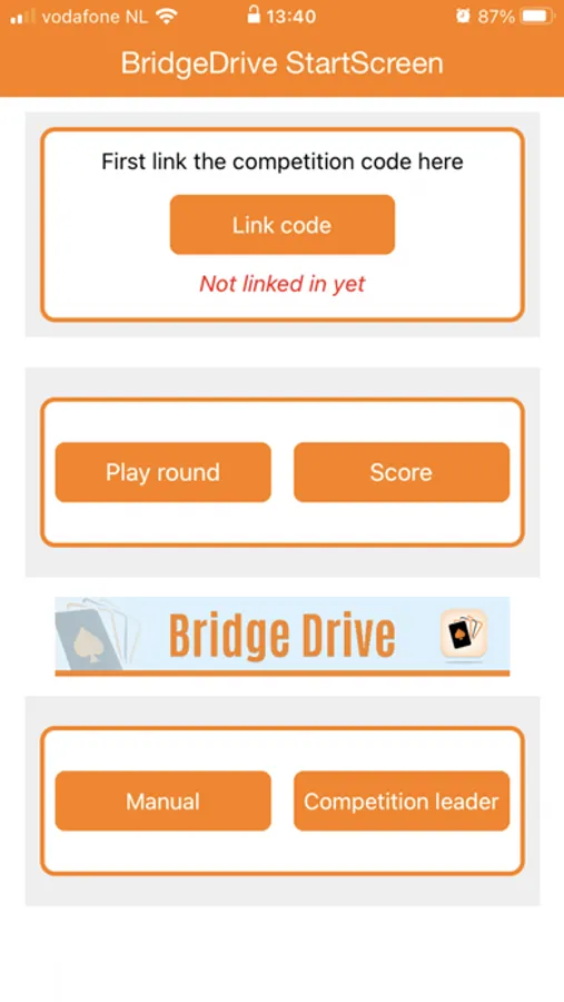 With BridgeDrive, organize Bridge tournaments with 2, 3, or 4 tables, equivalent to 4, 6, or 8 pairs. Connect various tablets or phones using a code generated by the tournament director.