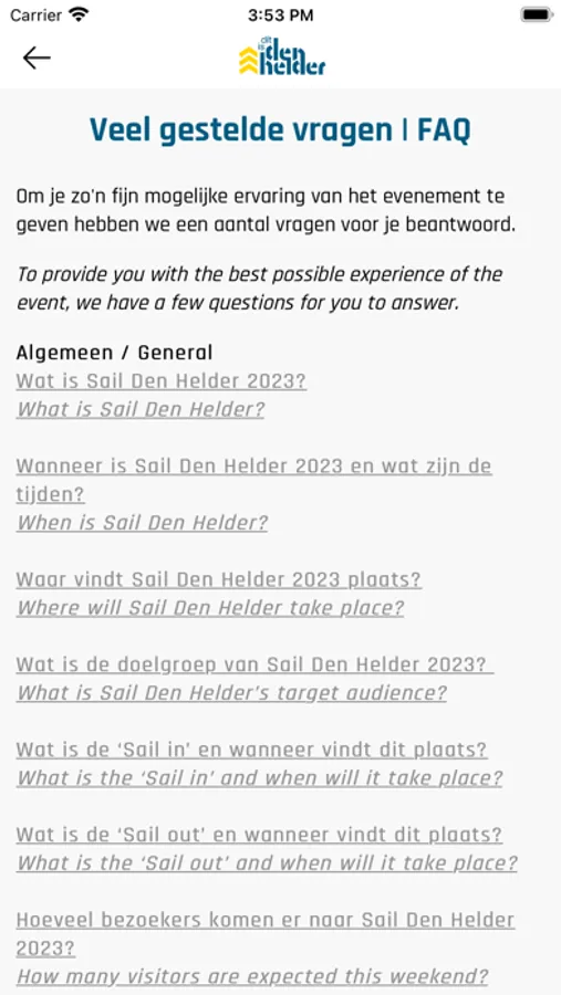 Van 29 juni tot 2 juli 2023 vindt de zesde editie van SAIL Den Helder plaats. Een prachtig maritiem evenement dat dit jaar samengaat met de Marinedagen. Bovendien fungeert SAIL Den Helder als startpunt voor de prestigieuze Tall Ships Race 2023. Voor alle updates, nieuws en tijdschema's rond deze evenementen, houd onze 'Den Helder app' in de gaten - uw essentiële gids voor alles wat er gebeurt in de stad.