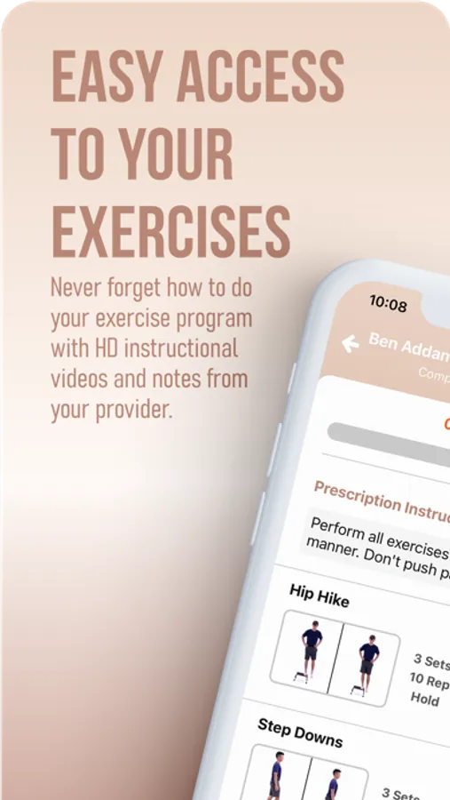 Using this app, you can access your personalized Home Exercise Program with HD Instructional videos. As you complete your exercises, we'll give you trophies and medals to celebrate your progress!