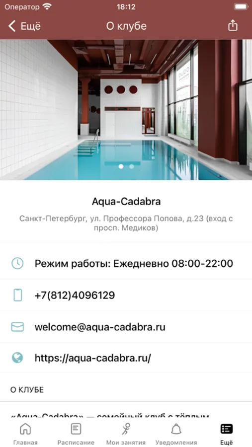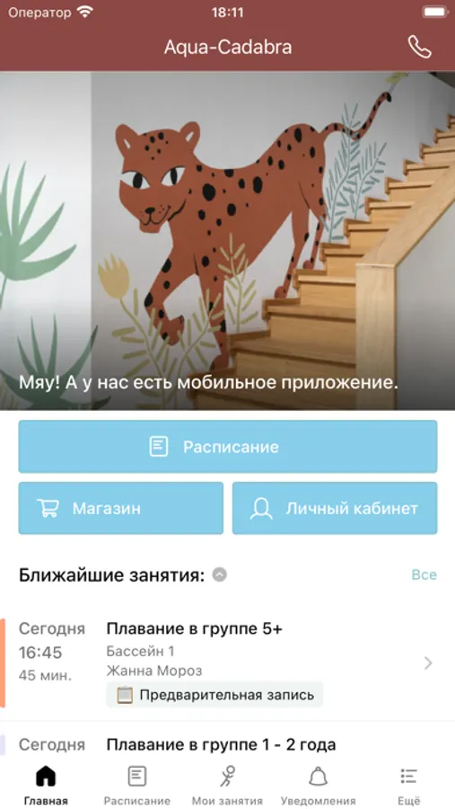 С помощью приложения вы можете следить за новостями, расписанием клуба, оперативно получать информацию об изменениях в расписании и специальных предложениях.