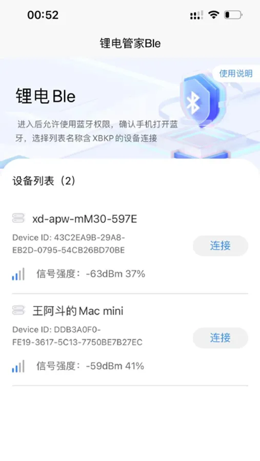 连接蓝牙对锂电池设备进行实时查看当前设备的情况