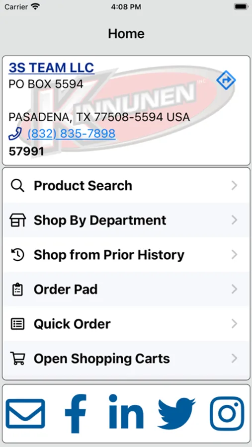 Welcome to the Order Entry app from Kinnunen. This app brings you the flexibility of searching our product catalog and submitting orders.