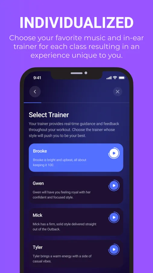 Select your in-ear trainer for real-time guidance and feedback