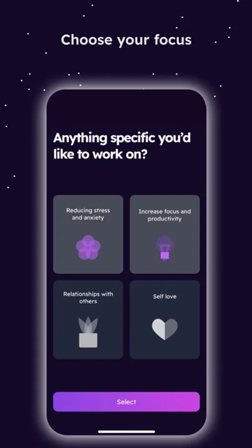 Choose your focus area—whether it's self-love, productivity, nurturing relationships, or conquering stress—and let our app guide you toward a more fulfilled life.