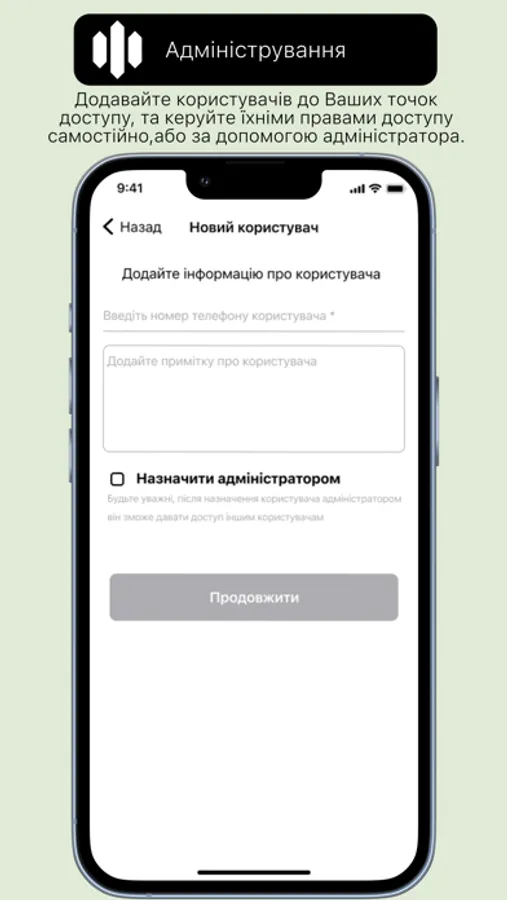- Додавайте адміністраторів та назначайте права доступу для Ваших місць;