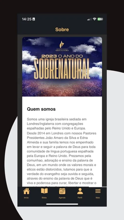 Aplicativo voltado para a Assembleia de Deus Missão Londres, para que os membros possam ter maior contato com notícias, estudos e informativos gerando um local de fácil acesso entre os membros, visitantes e a igreja através de: