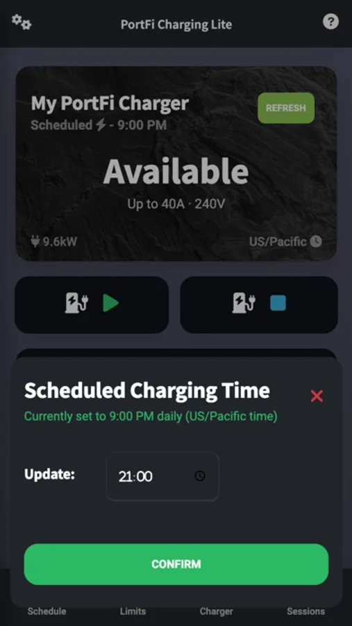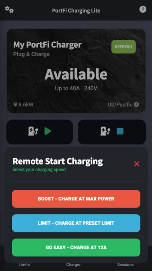 PortFi Charging Lite app provides smart EV charging functionalities, such as remote start/stop charging, set charging current (A) limits, set charging schedules, view energy history, etc., for ocpp-compliant PortFi smart charging stations. Specifically, time-based charging speed adjustments allow users to avoid overloading electrical panel during peak time and/or to take advantage of a lower electricity cost when a time-of-use rate is available from utility. The PortFi Charging Lite app features 3 charging modes: plug & charge, app-control, and scheduled charging to suit a variety of EV charging preferences.