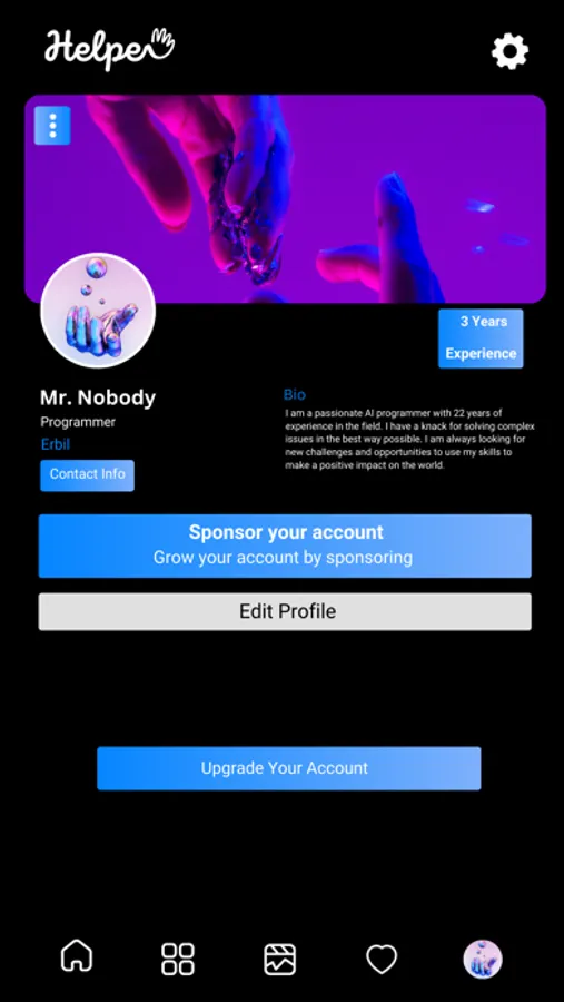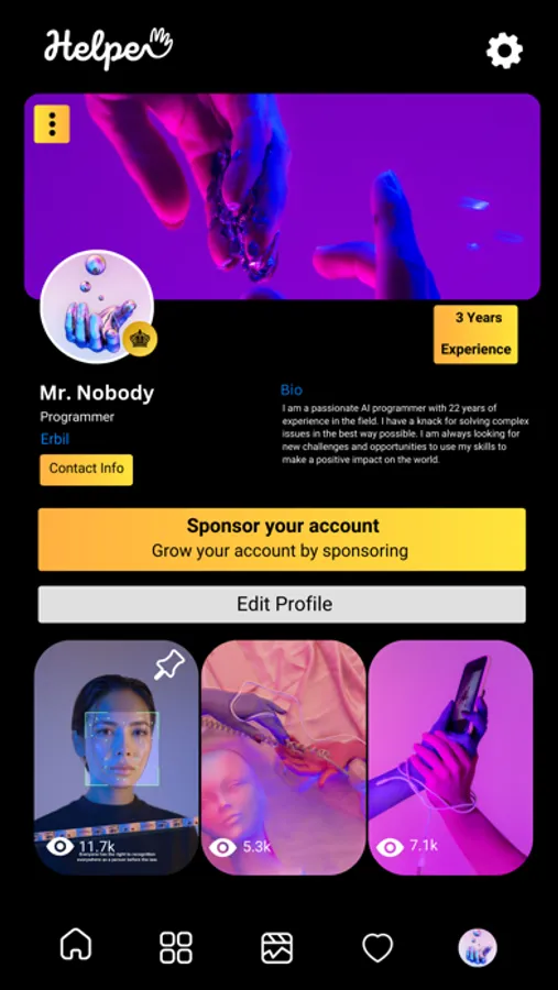Helper is a social media platform that connects job seekers with employers, and allows you to share your photos and videos with the world. Our platform was founded with the belief that finding a job should be easy, and that everyone deserves the opportunity to showcase their skills and creativity.