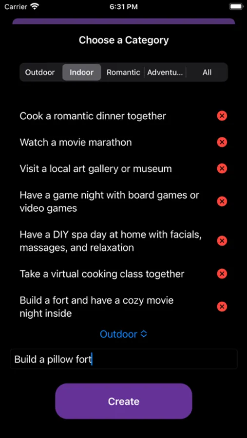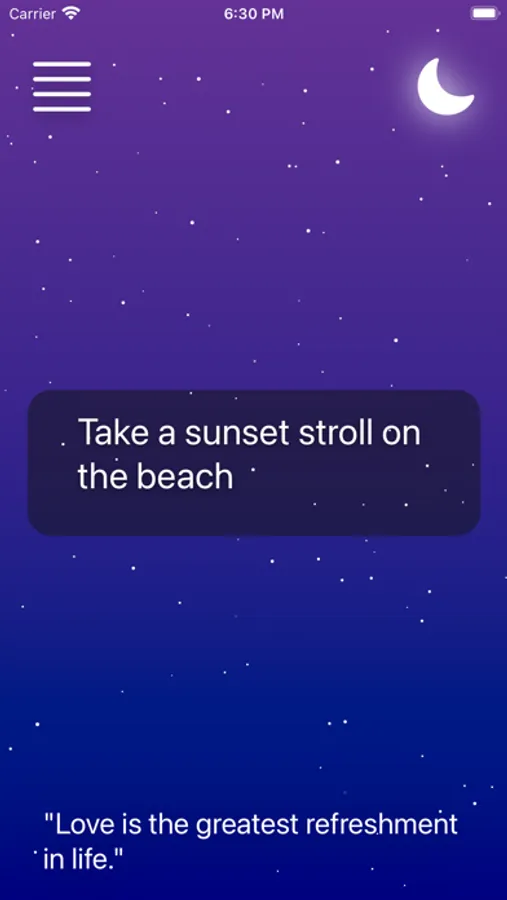 Explore a variety of date ideas, from adventurous outdoor activities to cozy indoor experiences. Surprise your person with unique suggestions tailored to your preferences and interests. With a simple tap, you'll receive a delightful date idea that will help you create cherished memories together.