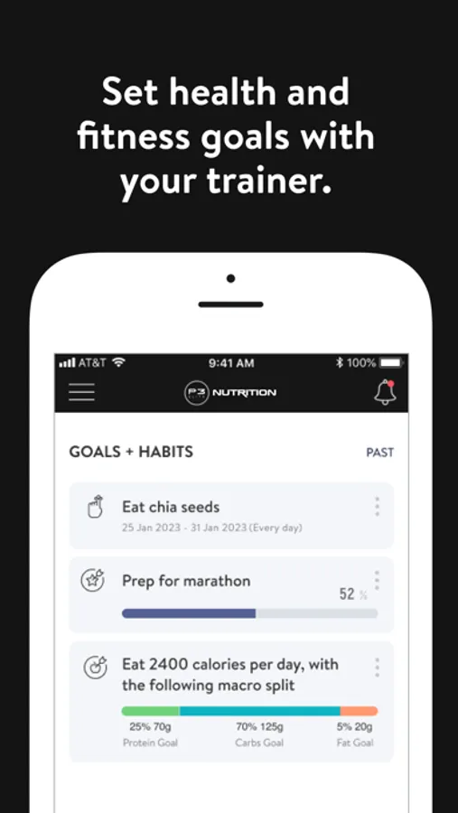 With the P3 NUTRITION App, you will have access to workout programs designed specifically to help you reach your fitness and health goals! You can follow & track your workouts, your nutrition, your lifestyle habits, measurements and results–all with the help of your coach.