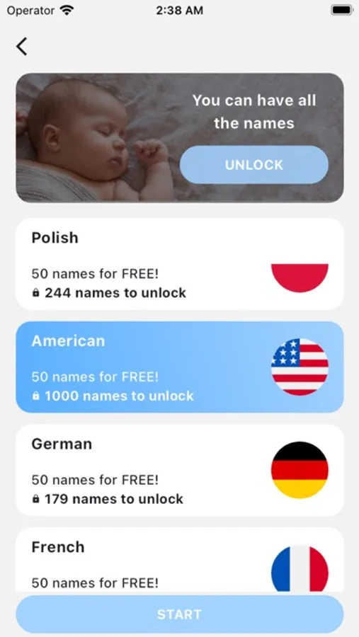 Upon launching the app, you'll be greeted with a vast selection of name categories inspired by different regions and traditions. Whether you're looking for American, Polish, Muslim, German, or any other culturally diverse names, we've got you covered. Explore the rich tapestry of names from across the world and immerse yourself in the beauty of global naming traditions.