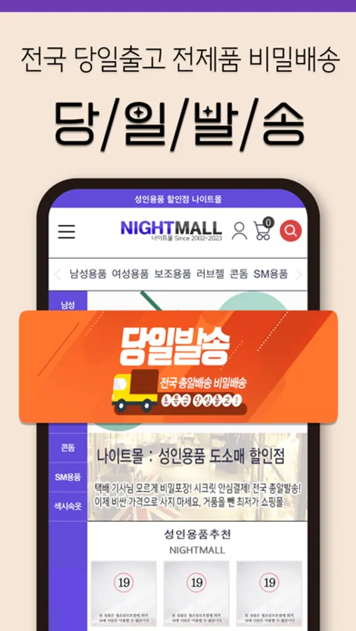 *성인용품 NIGHTMALL, SINCE 2002, 대형물류센터