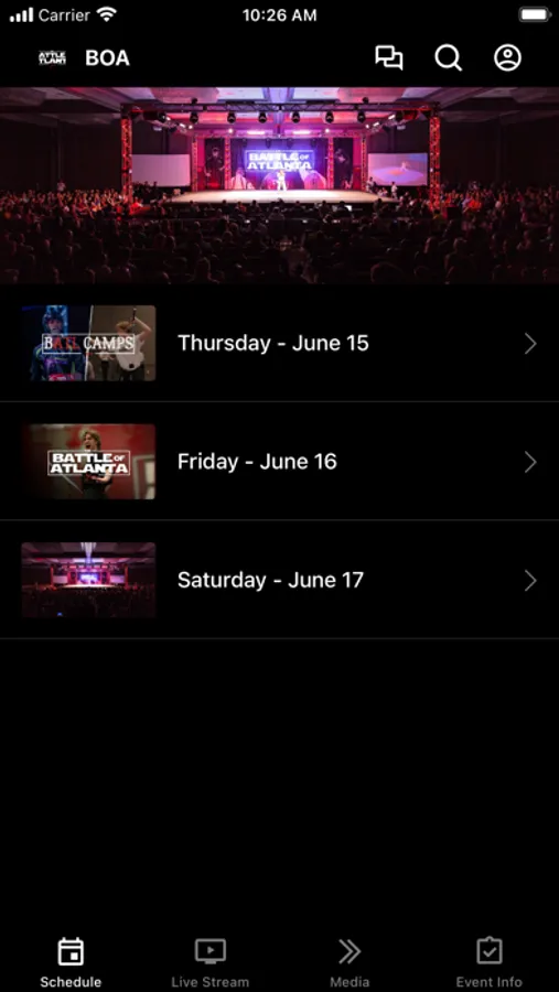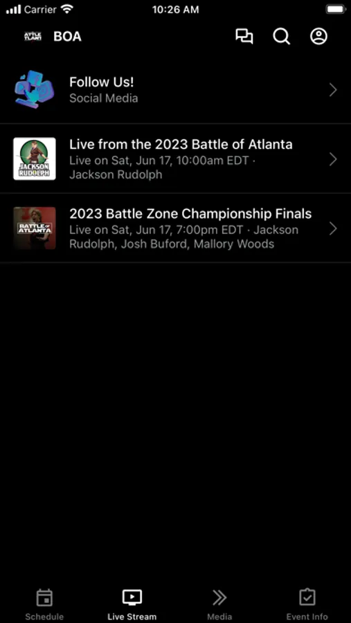 This app will help you stay connected with everything related to the Battle of Atlanta World Karate Championships. With this app you can: watch LIVE all of the Battle of Atlanta programming including Friday Night Fights, and the Battle Zone Championship Finals; stay up to date with push notifications; share via Instagram, Facebook, or email; and connect with fellow martial artists!