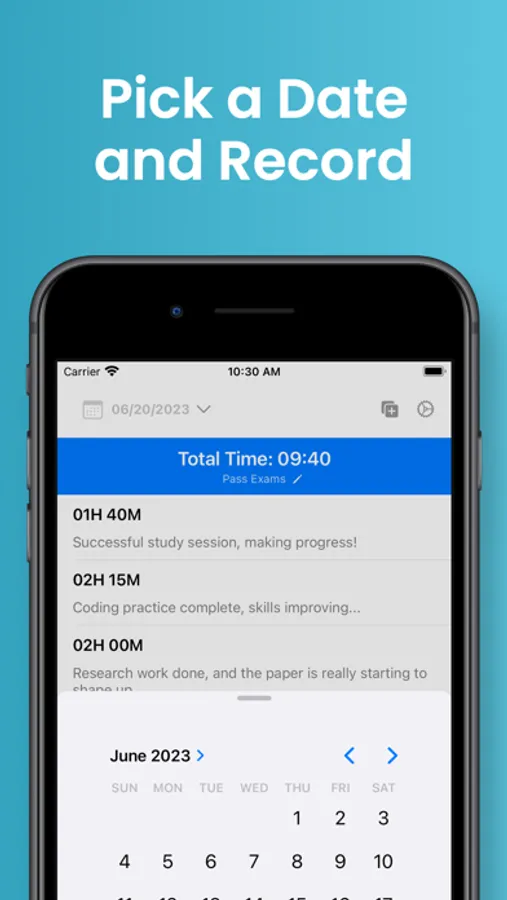2. Tap the + button on the top-right corner to add the study time for that day. You can add multiple durations.
