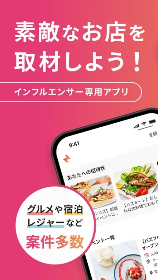 BUZMA PASS(バスマパス)は、インフルエンサー向けに飲食/宿泊/レジャー等の観光おでかけ関連の施設や案件を中心にマッチングを支援するサービスです。