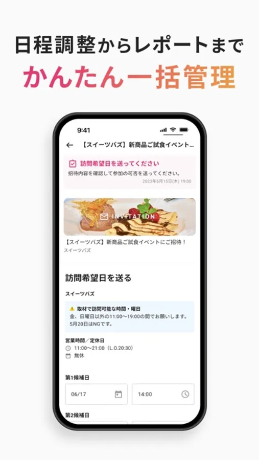 採用された案件の日程調整からレポートまで一括管理