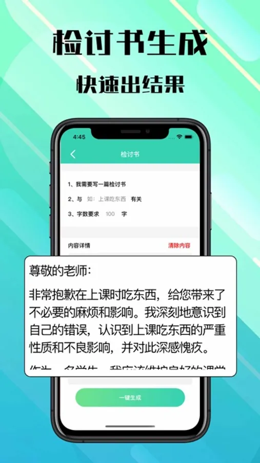检讨书生成是一款AI写作,用户只需要设定好相应的标题或要求,即可自动AI生成文章,支持检讨书,情书,作文等。快来体验吧~