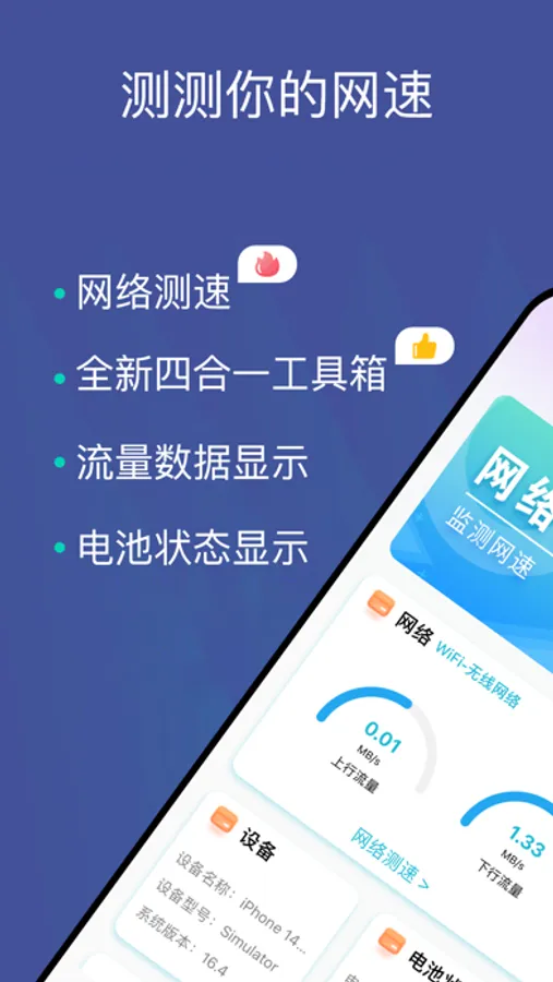 测测你的网速,查看你的网络速度,查看你的手机设备信息,还包括一些常用工具。