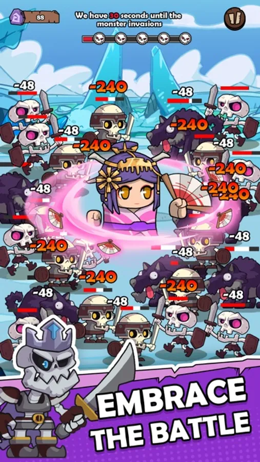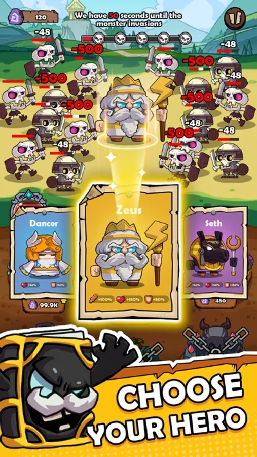 -Sensational Combats: Generate a multitude of monsters to challenge your hero, and watch as they bravely face an army of hundreds.