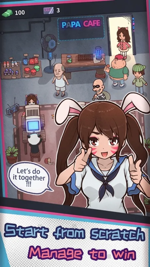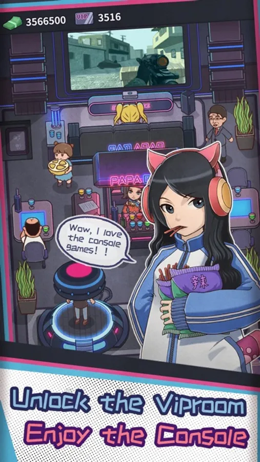 Gamer Cafe invites you to be the boss of an internet café. Here you can start your very first business from scratch. Recruit employees, develop your gaming team, grow up your business from a small, old and shabby store to a world-famous brand.Finally, you can lean back in a comfortable boss chair and become the idle rich!!