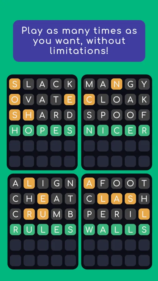 Introducing WordStry, your new favorite daily word puzzle game. It tests your skills with four distinct words to solve in just nine guesses, providing the perfect way to exercise the brain and expand your word knowledge.
