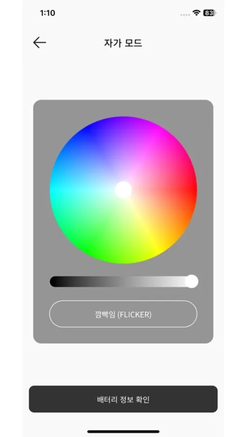 In the “SELF MODE” page of the app, click the “Check Battery Status” button at the bottom of the screen to check the battery level of your light stick and replace the battery if needed.