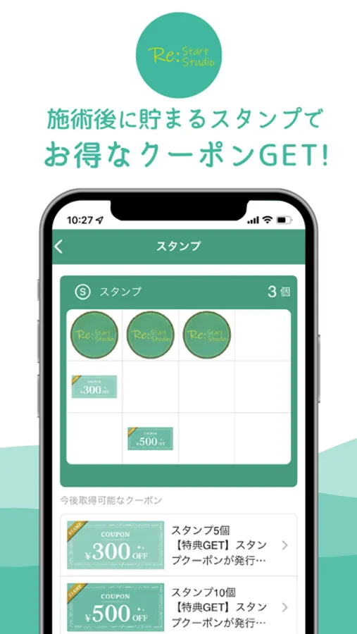 ご来店スタンプをためるとお得なクーポンが発行されます(ご利用条件がある場合がございます)