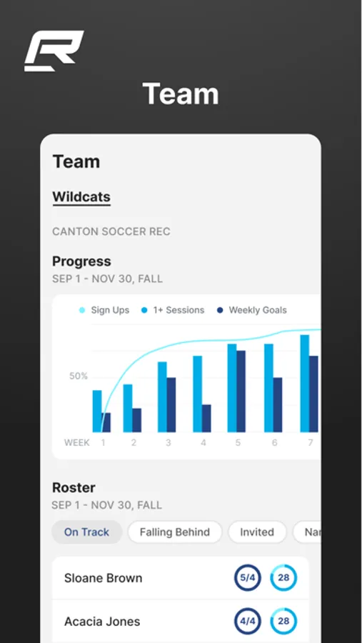 Progress and performance is transparent for athletes, coaches and athletic directors, leveraging positive team dynamics and encouraging training consistency.