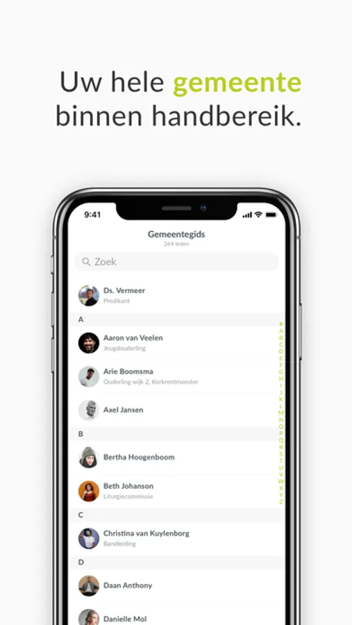 Wie zoekt er tegenwoordig nog een telefoonnummer op in het telefoonboek? Vrijwel niemand! Dankzij de gemeentegids feature is iedereen binnen uw kerkelijke gemeente terug te vinden. Snel berichten sturen, naar een adres navigeren of zien wat iemands rol in de kerk is? Met de digitale gemeentegids wordt het makkelijk.