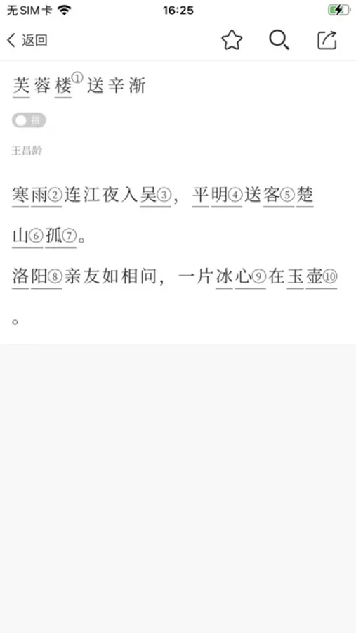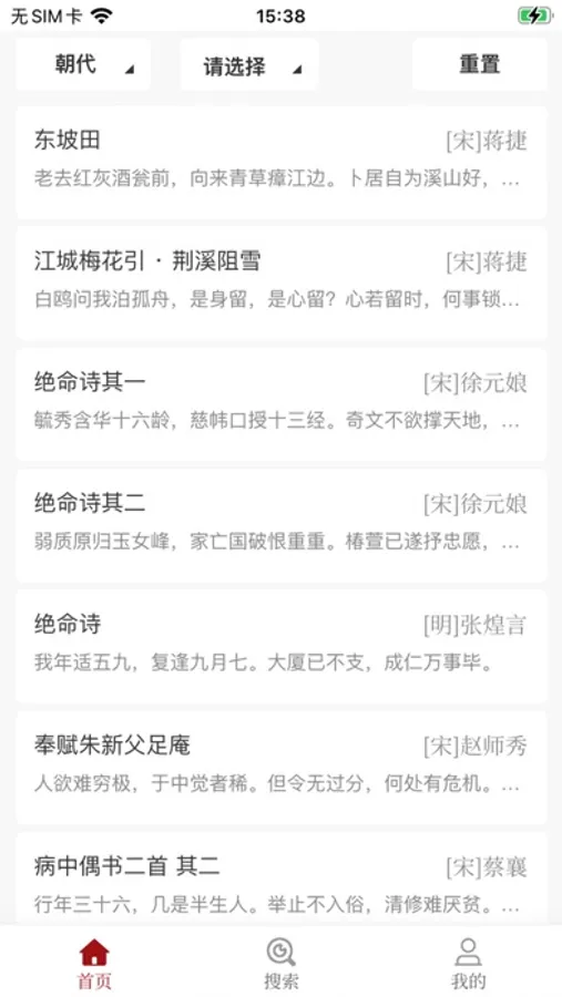 ●强大的搜索,如果有要查询的诗词,只要你能想到的都能查到,做你的随身诗词大全。