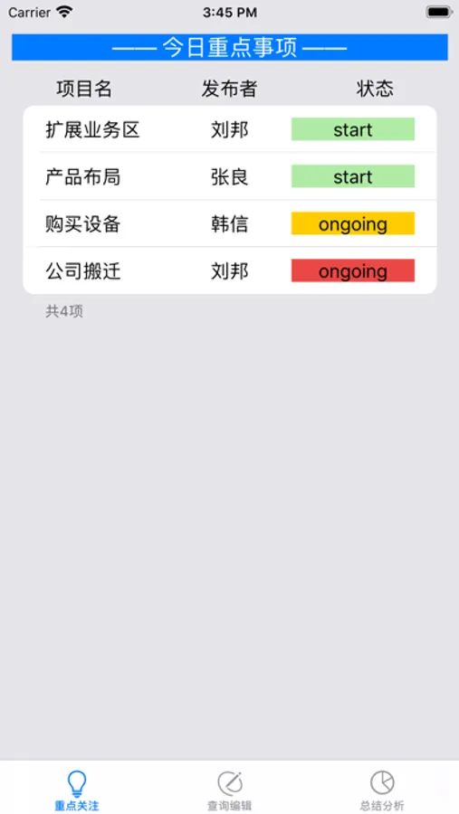 2.今日关键事项提醒:在“重点关注“页面可及时查看当前需关注的重点事项,调出明细显示工作内容等信息;