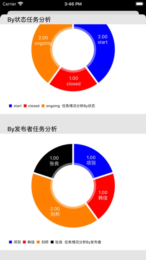 3.汇总分析结案状况:在“总结分析”页面可依时间间隔以饼状图分析开展进度状况。