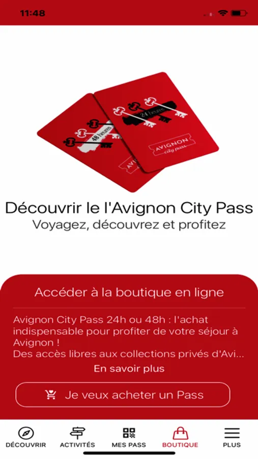 Avec l’Avignon City Pass, économisez plus de 50€ sur les incontournables de la Cité des Papes, et bénéficiez d'un accès direct aux musées et monuments d’Avignon et de Villeneuve-lès-Avignon, de réductions sur vos visites guidées et lors de l’achat de certaines activités, ainsi que sur votre forfait stationnement 24h ou 48h !