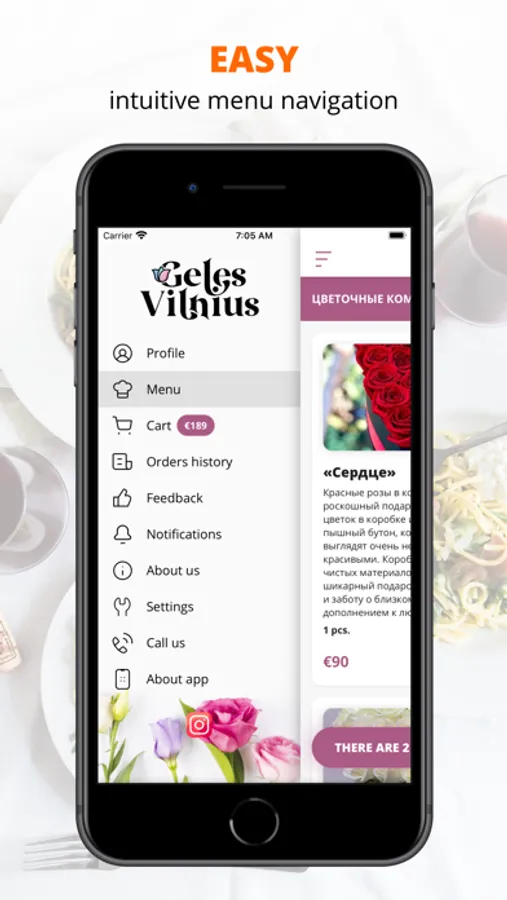 Mūsų programoje galite pasirinkti ir užsisakyti gėles internetu neišeidami iš namų. Mūsų kataloge yra didelis gėlių pasirinkimas, įskaitant rožes, lelijas, gvazdikus, tulpes, orchidėjas ir daug daugiau. Be to, siūlome įvairių puokščių ir kompozicijų, kurias galite rinktis pagal savo poreikius ir biudžetą.