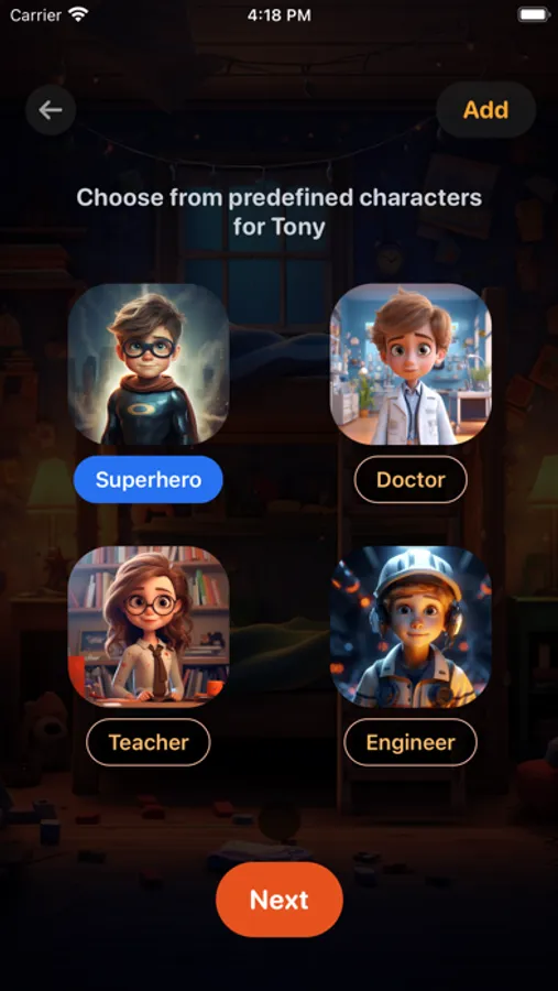 The app allows parents to choose from different characters, including superheroes, astronauts, police officers, and various themes, ranging from adventure, science fiction, to fairy tales and more. Additionally, parents can input their own content to generate a story. For example, parents can request to write a story about their child's adventure in the forest or battling a dragon.